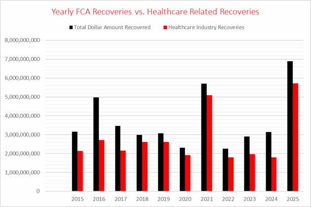 The Department of Justice (DOJ) released its annual False Claims Act (FCA) enforcement statistics on January 16, 2026. The DOJ announced a record level of recoveries from FCA resolutions in Fiscal Year (FY) 2025 (ending Sept. 30, 2025), which exceeded $6.8 billion. These statistics reflect the highest single-year dollar amount recovery on-record since the DOJ began reporting such statistics in 1987.